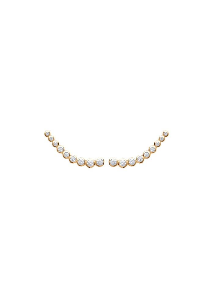 Cette barrette donne l'impression d'avoir toute l'oreille percée mais elle ne nécessite qu'un seul trou ! Passez la tige dans le trou, remontez la boucle le long de l'oreille et appuyez pour serrer et maintenir sur le lobe