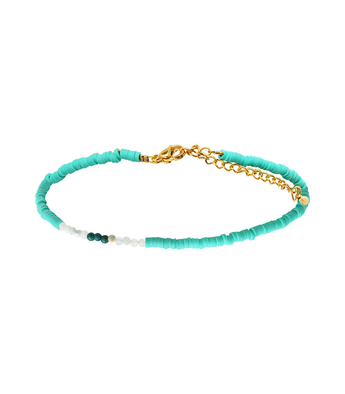 Détails : fermoiret chaine de réglage en acier inoxydable, perles heishi et pierres naturelles